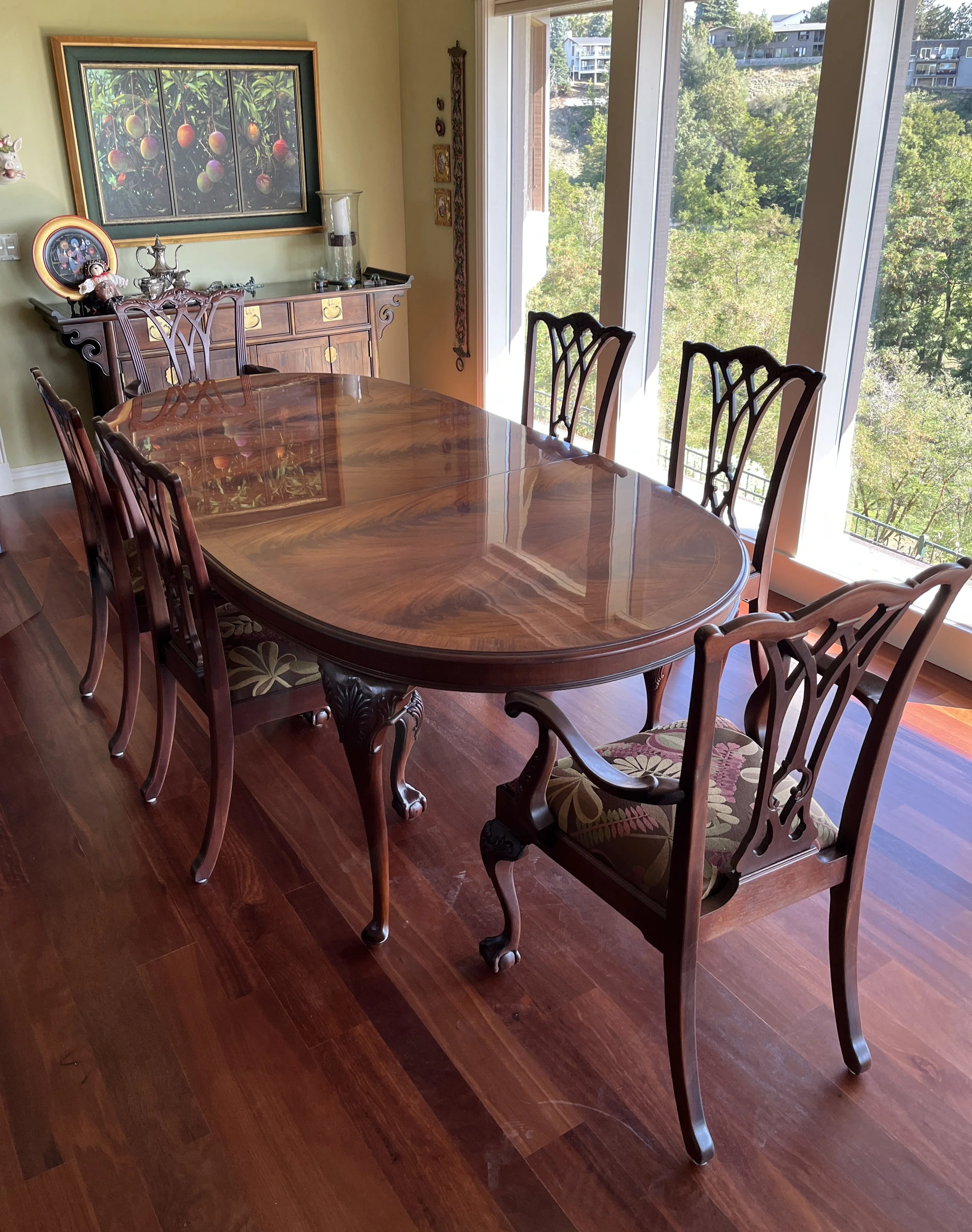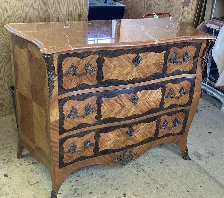 Refinishing includes stripping, sanding, repair, touch up, staining and finishing with premier, durable conversion varnish